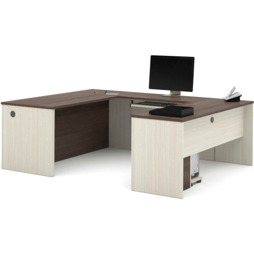 Bestar U-Shaped Workstation with Pedestal - White Choc/Antigua - Prestige Series