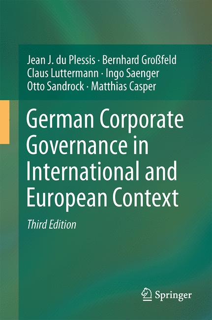 The book provides readers with an overview of the unique features of German business and enterprise law and an in-depth analysis of the organs of governance of German public limited companies (general meeting, management board, supervisory board). In addition, approaches for reforms required at the international level are also suggested and discussed, including, among others, the unique interplay and dynamics of the German two-tier board model with the system of codetermination, referring to the arrangement of employees sitting on the supervisory boards of German public limited companies and private companies employing more than 500 employees; also covered are significant recent legal developments in Europe. The book highlights the core function of valuation and financial reporting at the international, European and German levels, with accounting as the documentary proof of good corporate governance. Corporate governance encompasses the free enterprise system, whichis treated comprehensively in this book from a German perspective. This distinguishes the book from other books written in English in this subject area, not only because of the comprehensive way it covers German corporate law and corporate governance, but also because of the fact that it provides international and European perspectives on these important topics. The book is addressed to researchers, practitioners and basically anyone with an interest in the complex, but intriguing areas of corporate law and corporate governance.