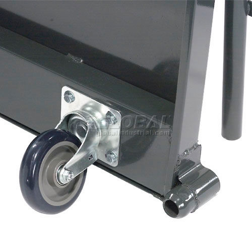 Steel Deck Platform Truck 48 x 24 1000 Lb. Capacity Polyurethane Casters - 952106 All welded heavy duty, 14-gauge steel decks, reinforced with internal longitudinal stiffening members for extra strength. Non-marring integral corner bumpers protect walls. Features a removable pipe handle. Bolt-on casters are double-ball race, two swivel and two rigid. Durable baked enamel finish.