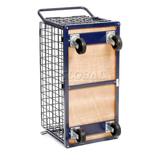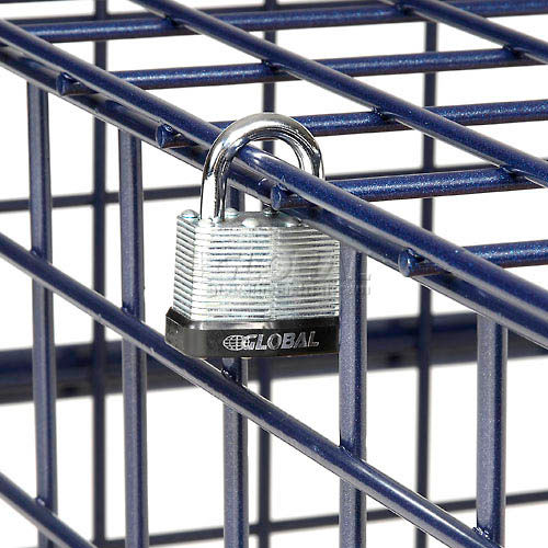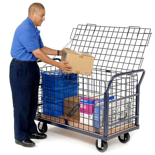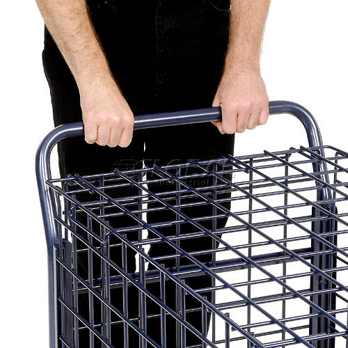 Euro Style Wire Security Truck 60 x 30 2400 Lb. Capacity Transport materials easily and securely. Sturdy 1/8" x 1-1/2" angle iron frame has rounded safety edges and is finished in scratch resistant blue enamel. Rugged 3/4" thick plywood decking with lacquer finish helps reduce noise during transport. Wire panels 23"H with 2-1/4" sq. grids allow for air circulation and inventory control. This Security Truck can be locked with the optional padlock to protect contents. Each truck includes two swivel and two rigid casters. Cross-braced 29"h handle. Assembles easily.