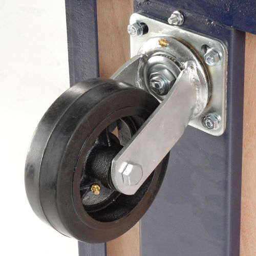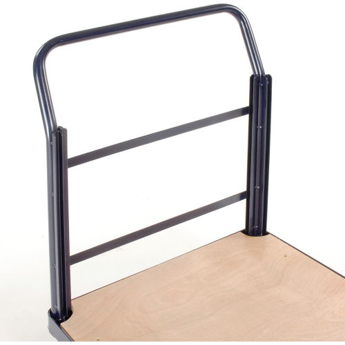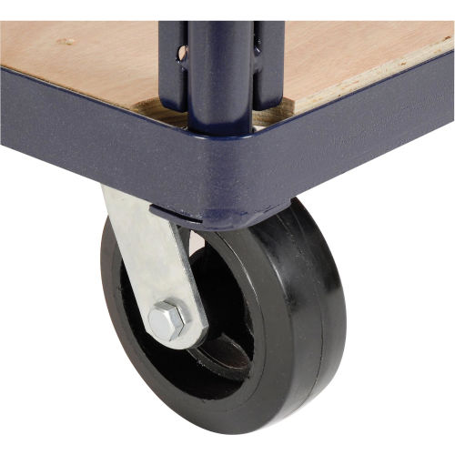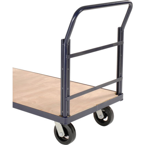 Steel Bound Wood Deck Platform Truck 60 x 30 2000 Lb. Capacity Rubber Casters - 241711 Rugged 3/4" thick plywood deck with lacquer finish is surrounded by a sturdy 1-1/2" x 1/8" angle iron frame with chip-resistant enamel finish. Removable cross-braced tubular steel handle. Corner sockets on both ends are integrated into the frame to accommodate additional removable handle (sold separately). Roll smoothly on 2 swivel, 2 rigid casters. Assembles easily.