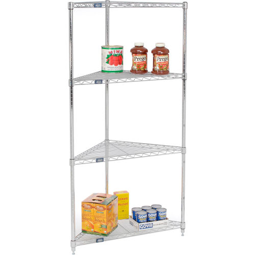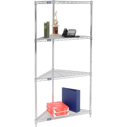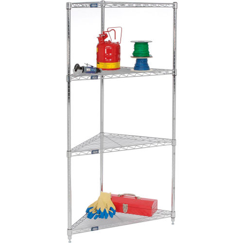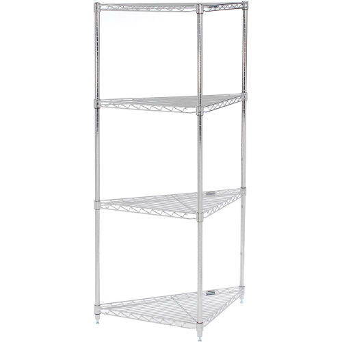 Buy Nexel Chrome, 4 Shelf, Corner Wire Shelving Unit, 32"W x 24"D x 74"H for $119.95 at @ Globalindustrial.com