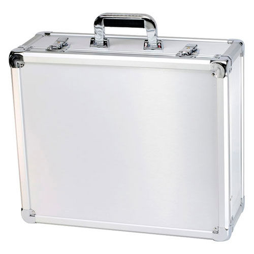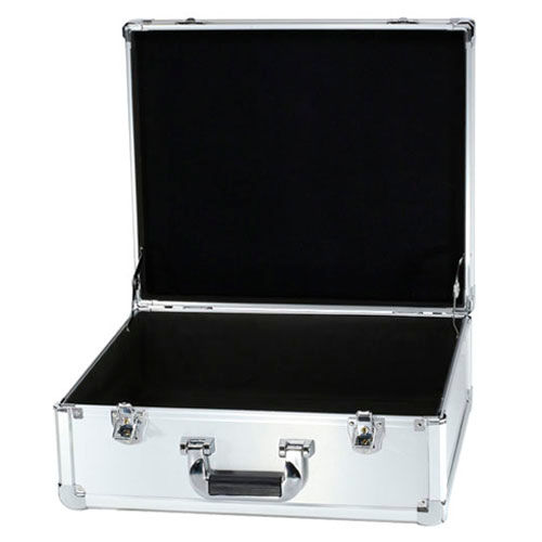 Aluminum Frame and Panels Reinforced Metal Riveted Corners Smooth Brushed Finish Chrome Stylish Handle Two Key Lock Draw Latches Two Lid Stay Hinges Black EVA Lining.