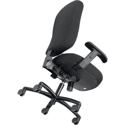 Interion BIG & TALL SEATING Total comfort for the big and tall. Reinforced, sturdy construction for longer life. Ultra-thick 3-1/2" foam cushioning. Durable nylon blend fabric upholstery. Extra wide and high 21-5/8"W x 19-5/8"D seat and 19-5/8"W x 29-1/8"H back. Pneumatic 18-1/8" to 22-3/4" height adjustment, trigger button movable armrests for custom positioning, and tilt-lock mechanism will help increase overall productivity. T-Arms are height adjustable. Sturdy aluminum five blade base with dual wheel swivel casters for added comfort. 450 lb. weight capacity. The best all-around value. Brand is Interion By Global Industrial. Easy assembly.