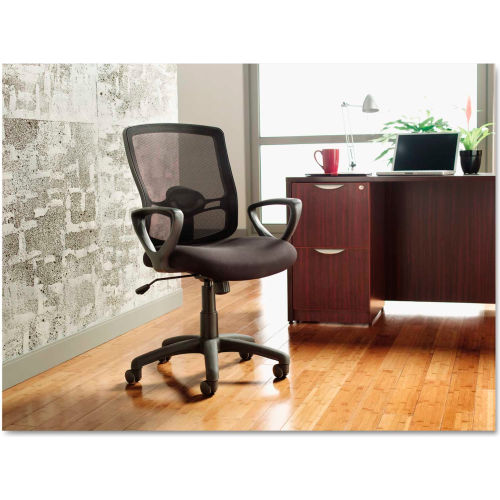Alera ALEET42ME10B Etros Series Mesh Mid-Back Swivel/Tilt Chair,Black An economical choice for mesh comfort. Breathable mesh back with cushioned mesh fabric seat. Adjustable lumbar support. Five-star base with casters for easy mobility. Recommended Applications: General Office & Task; Seat/Back Color: Black. Compliance Standards: GREENGUARD Indoor Air Quality Certified ; Meets or exceeds ANSI/BIFMA standards. Note: Casters supplied with this chair are not suitable for all floor types.