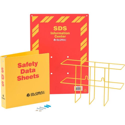 ✓ Includes binder, rack, and backerboard. ✓ Highly visible red, yellow, and orange design is easy to find. ✓ Surrounding backboard adds extra visibility. Keep your SDS compliance center neat and readily available for quick access with the Global Industrial SDS Binder & Safety Station. Equipped with a durable wire basket, bright yellow design, and information on the properties of all hazardous chemicals, this setup is ideal for mounting in warehouses, chemicals plants, and information on the properties of all hazardous chemicals. A central reference point is key to helping your employees take the proper protective measures and safety precautions for handling, storing, and transporting chemicals. Comes assembled.