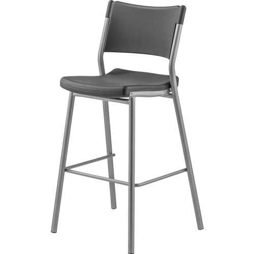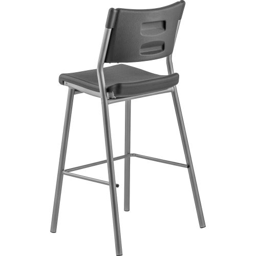 NPS Cafe Time Bistro Stool Seat w/ Backrest 17"W x 16"D x 42"H Charcoal Charcoal slate colored bistro height stools feature ergonomically curved plastic seats and backs mounted on a sleek 1-1/8" tubular steel frame, with silver tone powder coated paint.