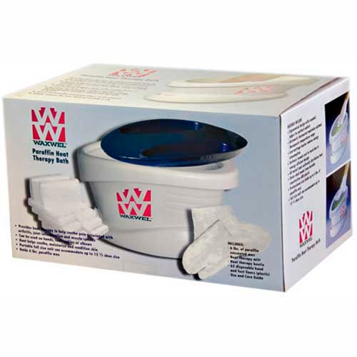 WaxWel paraffin unit with pounds of rose blossom wax, 100 liners, 1 terry hand mitt and 1 terry foot bootie for soothing paraffin treatment of hand or foot. WaxWel unit is heavy duty for continuous use in high traffic clinics. The unit has an oversized tank that can accommodate a man's size 12-1/2 foot. The unit is portable and can even be used in the home. Standard Unit Includes: 100 Liners, 1 Mitt, 1 Bootie and lb. Rose Paraffin.