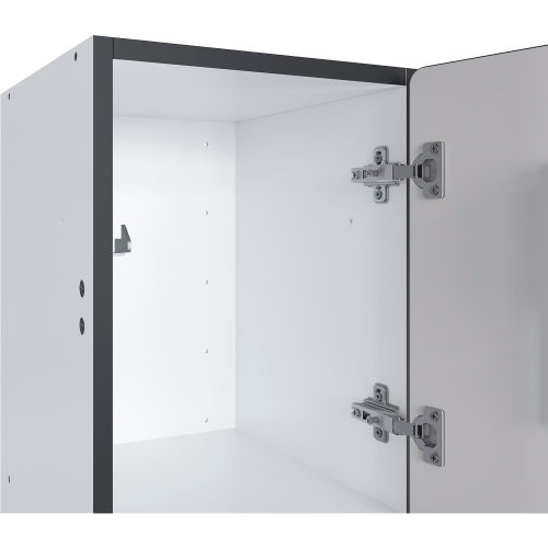 ✓ Lift-up hasp locking mechanism ✓ Carb II-compliant particleboard covered in durable laminate ✓ Durable and moisture-resistant steel base Elevate the look & feel of your locker room or changing room with this fully assembled 4-tier/4-door Global Industrial Wood Locker. Wood lockers give any space a natural warmth that presents a more comfortable and welcoming tone than standard metal lockers plus they are also quieter when they close. The body of the locker is made of 0.70" (18mm) thick Carb II-compliant particleboard covered in a durable high-pressure laminate with heavy-duty concealed steel hinges, and a lift-up hasp locking mechanism. What separates this Global Industrial wood locker from the competition is the durable, moisture-resistant steel base. Typical wood lockers carry the wood to the base, which can warp, peel, or buckle when exposed to persistent moisture such as gym or club locker rooms and spas. The steel base on this locker is designed to deliver elegant performance with a long service life. This version comes fully assembled in a gray color. Door edges are banded with PVC banding Locker doors are 12.0" wide x 0.70" deep Blank steel ID plates included for customization Optional color-matched gray end panel, #290630 available separately, to present a finished look Ideal for use in: Clubhouses & country clubs, spas & resorts, fitness centers & gyms, executive suites.