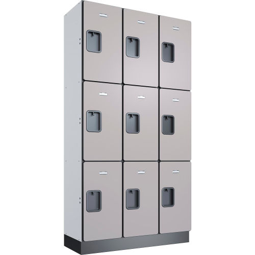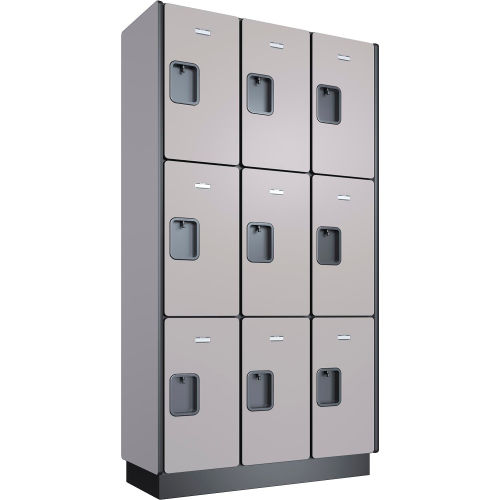 Buy Global Industrial 3-Tier 9 Door Wood Locker, 36"W x 15"D x 72"H, Gray, Unassembled for $875.00 at @ Globalindustrial.com