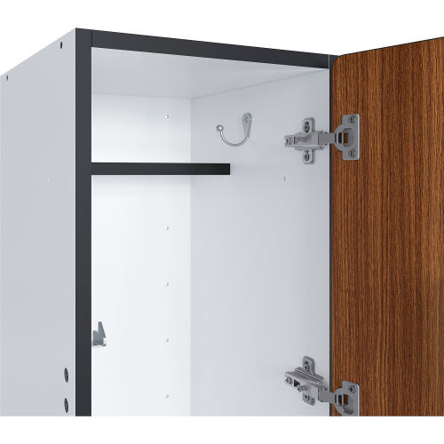 ✓ Lift-up hasp locking mechanism ✓ Carb II-compliant particleboard covered in durable laminate ✓ Durable and moisture-resistant steel base Elevate the look & feel of your locker room or changing room with this unassembled 2-tier/2-door Global Industrial Wood Locker. Wood lockers give any space a natural warmth that presents a more comfortable and welcoming tone than standard metal lockers plus they are also quieter when they close. The body of the locker is made of 0.70" (18mm) thick Carb II-compliant particleboard covered in a durable high-pressure laminate with heavy-duty concealed steel hinges, and a lift-up hasp locking mechanism. What separates this Global Industrial wood locker from the competition is the durable, moisture-resistant steel base. Typical wood lockers carry the wood to the base, which can warp, peel, or buckle when exposed to persistent moisture such as gym or club locker rooms and spas. The steel base on this locker is designed to deliver elegant performance with a long service life. This version comes unassembled in a cherry wood color. Door edges are banded with PVC banding Locker doors are 12.0" wide x 0.70" deep Blank steel ID plates included for customization Each compartment includes a 4-5/8" deep shelf and two sets of double prong hooks Optional color-matched cherry wood end panel, #290629 available separately, to present a finished look Ideal for use in: Clubhouses & country clubs, spas & resorts, fitness centers & gyms, executive suites.