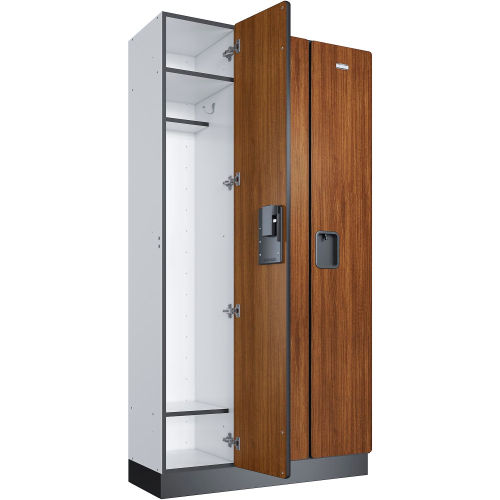 ✓ Lift-up hasp locking mechanism ✓ Carb II-compliant particleboard covered in durable laminate ✓ Durable and moisture-resistant steel base Elevate the look & feel of your locker room or changing room with this unassembled 1-tier/3-door Global Industrial Wood Locker. Wood lockers give any space a natural warmth that presents a more comfortable and welcoming tone than standard metal lockers plus they are also quieter when they close. The body of the locker is made of 0.70" (18mm) thick Carb II-compliant particleboard covered in a durable high-pressure laminate with heavy-duty concealed steel hinges, and a lift-up hasp locking mechanism. What separates this Global Industrial wood locker from the competition is the durable, moisture-resistant steel base. Typical wood lockers carry the wood to the base, which can warp, peel, or buckle when exposed to persistent moisture such as gym or club locker rooms and spas. The steel base on this locker is designed to deliver elegant performance with a long service life. This version comes unassembled in a cherry wood color. Door edges are banded with PVC banding Locker doors are 12.0" wide x 0.70" deep Blank steel ID plates included for customization Each compartment includes a 4-5/8" deep shelf and two sets of double prong hooks Optional color-matched cherry wood end panel, #290629 available separately, to present a finished look Ideal for use in: Clubhouses & country clubs, spas & resorts, fitness centers & gyms, executive suites.