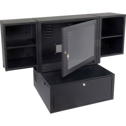 Optional Door with Acrylic Window For Global Industrial Fold-Out Computer Cabinet, Black