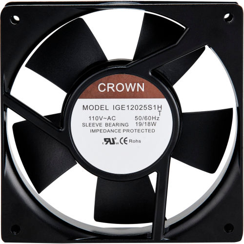 ELECTRONIC FAN Designed for Global Industrial Mobile Security, LCD, Console Computer Cabinets & Global Industrial Audio-Visual Carts. Ventilates electronic equipment, including computer hardware and components. Keep out dust and debris while reducing heat build-up. Easily installs in knock-outs and ventilation openings using included hardware for optimum exhaust applications. 4-1/2" diameter fan with 5-blade impeller includes chrome plated spiral wire safety guards on one side. Includes 5' length, 3-conductor 115V power cord. 88.1 CFM. Overall dimensions: 4-3/4"W x 4-3/4"H x 1-3/4"D. Order one fan for each upper, lower and side car compartment.
