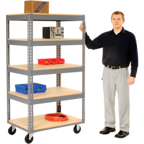 Buy Global Industrial Boltless Shelf Truck, 5 Shelves, Poly Casters, 36"L x 24"W x 65"H, Gray for $259.95 at @ Globalindustrial.com
