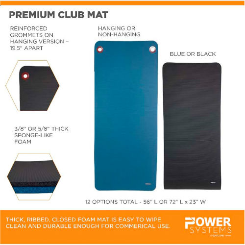 Buy Power Systems Premium Club Exercise Mat - 56"L x 23"W x 5/8" Thick - Jet Black for $64.95 at @ Globalindustrial.com