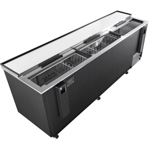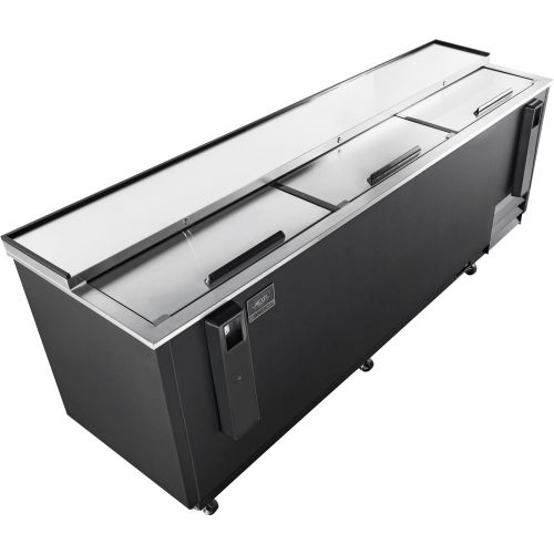 Nexel Horizonal Bottle Cooler, 3 Sliding Lids, 26.6 Cu. Ft., Black.