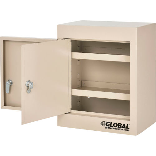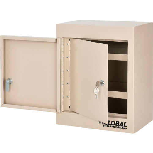 Global Industrial Small Narcotics Cabinet, Double Door, Double Lock, 12"W x 8"D x 15"H, Beige.