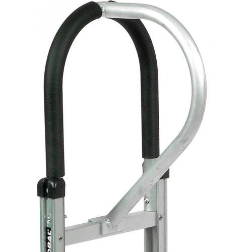 18" Wide Noseplate Carries Larger Loads! High strength aluminum construction offers lightweight alternative to heavier steel hand trucks. Exclusive 4 rail design offers 33% greater frame reinforcement to ensure long life. 12" wide frame has protective polyethylene rail caps. Large 18" x 7-1/2" beveled noseplate accepts bulky loads and has integral wheel guards to protect cargo. Comfortable anti-slip grips for safety. Mold-on Rubber wheels offer long life and lightest weight. Easy assembly. 2 Year Limited Warranty.