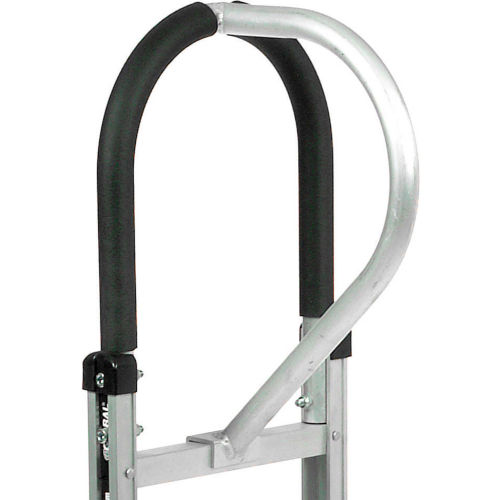 18" Wide Noseplate Carries Larger Loads! High strength aluminum construction offers lightweight alternative to heavier steel hand trucks. Exclusive 4 rail design offers 33% greater frame reinforcement to ensure long life. 12" wide frame has protective polyethylene rail caps. Large 18" x 7-1/2" beveled noseplate accepts bulky loads and has integral wheel guards to protect cargo. Comfortable anti-slip grips for safety. Semi-pneumatic wheels are easiest to roll and resist punctures. Easy assembly. 2 Year Limited Warranty.
