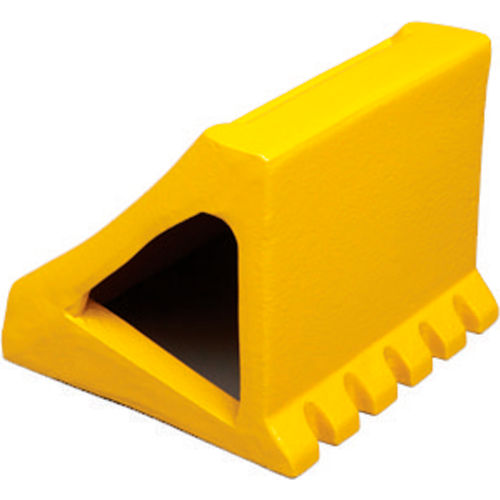 IRONguard 60-7290 Cast Ductile Iron Wheel Chock 7-1/4"L x 8-1/2"W x 8-1/2"H Heavy-duty wheel chock is constructed of cast ductile iron for impressive strength and durability. High-visibility safety yellow chock helps your dock or shipping area comply with OSHA requirement 1910.178(k)(1) to prevent movement of trucks or trailers while loading or unloading. Recommended to be used in pairs.