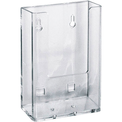 4" Wide High 1.5" Deep Wall Mount Brochure Holder. Made from clear acrylic and holds standard sized Tri-Fold brochures. Hanging Hardware not included, sold in packs of 10.