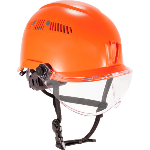 Buy Ergodyne Skullerz 8975V Class C Safety Helmet with Visor Kit, Anti-Fog Clear Lens, Orange for $119.95 at @ Globalindustrial.com