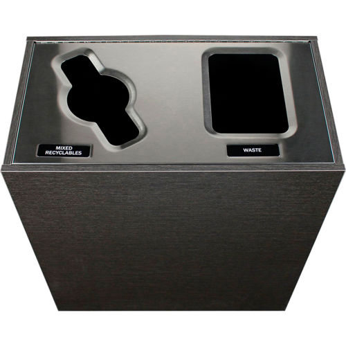 The Aristata Series is part of our designer collection as it brings style and sophistication to your recycling and waste program. A bold new departure for waste and recycling bins. Elevated style to complement your sophisticated environment.Beautiful stainless steel lids feature restrictive lead in openings for easy cleaning.Patent pending ergonomic liners offer stress-free servicing and are made from 100% post-consumer recycled content. For Indoor Use Only.