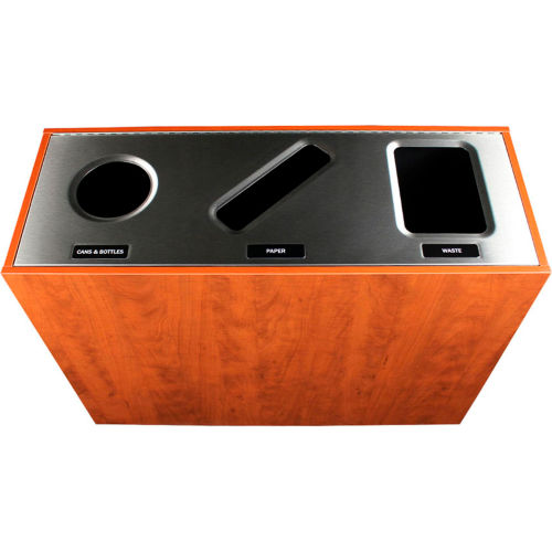 Buy Busch Systems Aristata Triple Recycling & Trash Can, Cans & Bottles/Paper/Waste, Gallon, Wooden for $1,025.00 at @ Globalindustrial.com