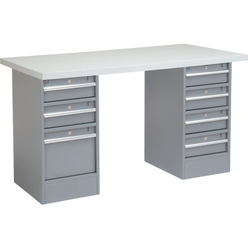 Buy Global Industrial 72 x 24 Pedestal Workbench 3 Drawer / 4 Drawers, Laminate Square Edge Gray for $919.20 at @ Globalindustrial.com