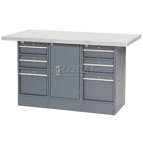 Global Industrial Workbench w/ Laminate Top, 6 Drawers & 1 Cabinet, 60"W x 30"D, Gray