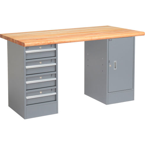 Global Industrial 72 X 30 Pedestal Workbench - 4 Drawers & Cabinet, Maple Safety Edge - Gray