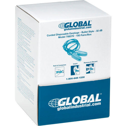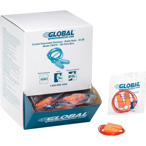 Buy Global Industrial Bullet Earplugs, Tapered, Corded, NRR 32 dB, 100 Pairs/Box for $30.95 at @ Globalindustrial.com