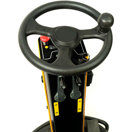 ✓ Two 12-volt 305Ah batteries help extend run time ✓ Added safety features to help keep the rider safe during use ✓ USB charger and phone pocket for convenience Simplify indoor floor cleaning with the Cat C26R Auto Ride-On Floor Scrubber. This industrial floor scrubber provides an impressive cleaning capacity of 37,600 sq. ft/hr. thanks to its 26-inch cleaning path. Large-capacity tanks provide more cleaning & operating time and less down-time for refilling. Heavy-duty cast aluminum squeegee assembly and rear-mounted squeegee hooks allow for easy storage. Bright LED headlight, blue safety warning light, impact-resistant body, seatbelt, pressure sensitive seat, and a non-slip diamond tread platform help keep the rider safe during use. Detachable squeegee assembly with onboard storage makes the unit more maneuverable between rooms within your facility. Comes assembled Solution tank capacity: 23-gallons Recovery tank capacity: 26-gallons Suitable for indoor use in dry conditions.