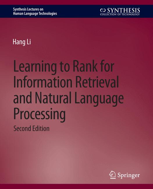 Buy Learning to Rank for Information Retrieval and Natural Language Processing, Second Edition for $27.00 at @ Link.springer.com when you apply the 10% OFF coupon at checkout.