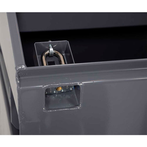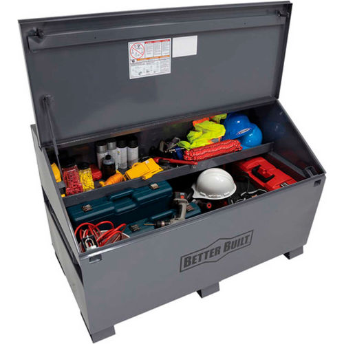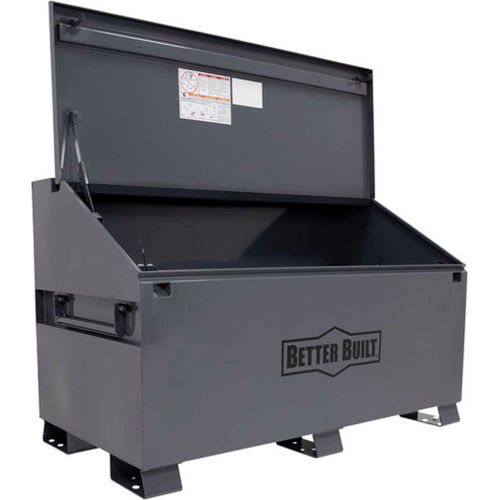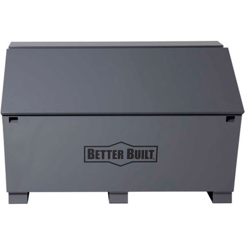 Better Built 3068-BB 60"W X 30"D X 37-5/8"H Jobsite Storage Sloped Chest Better Built jobsite sloped chest, 60in W x 30in D x 37.625in H in size. Built with jobsite proven features for security, durability, and ease of use. Fully arc welded, heavy duty 16 gauge steel construction. Secure storage solution for all types of hand tools, equipment, and construction material for your job. Features: One time installation lock system saves time and provides protection against break-in by saws, pry bars and bolt cutters (locks not included)1/4" thick solid lock tangs provide pry bar resistanceStaked and welded hingeHeavy-duty 16-gauge steel construction with fully arc-welded seamsPowder coat finish for maximum corrosion protection and long-lasting durabilitySolid, 1-piece, 7-Gauge steel skids offer a wide base for greater strength and stabilityErgonomic, recessed handles with 90-degree stops to provide maximum leverageLocking spreader secures lid in open position and prevents accidental closurePre-punched for Optional Power Pass grommet to provide easy electrical power cord access for battery charging while tools are safely locked inside the chest.