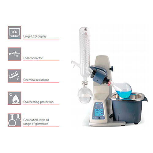 SCILOGEX RE100-Pro Rotary Evaporator including vertical coiled condenser, 5L bath, 1000ml evaporating flask NS 24/40 and 1000ml receiving flask KS 35/20, 110V, 50/60Hz, US Plug. Features: Digital display of both rotation speed and heating temperature allows for optimal control of all distillation processes5L heating bath with wide temperature range from room temp. to 180 CPatented condenser (cooling surface 1500cm2) with excellent cooling effectAutomatic motor lift releases the evaporating flask to a safe position in case of power failureSpeed range from 20 to 280 RPM, and interval operation in clockwise and anticlockwise directions for drying processOverheating protection temperature at 220 CTimer function for precise control processingChemical-resistant PTFE seals and patented pressure springs provide excellent sealingPrecise temperature control and adjustable safety circuitQuick release connectors for easy flask removalEjection mechanism ensures easy removal of evaporating flaskPatented double spring sealing ring which is made of PTFE provides excellent sealing performanceRemote function provides PC control and data transmission 2 year limited warranty.