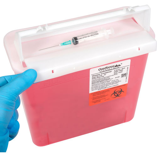 Buy Oakridge Products Sharps Container w/ Horizotal Drop Lid, M-Style, Red for $7.30 at @ Globalindustrial.com
