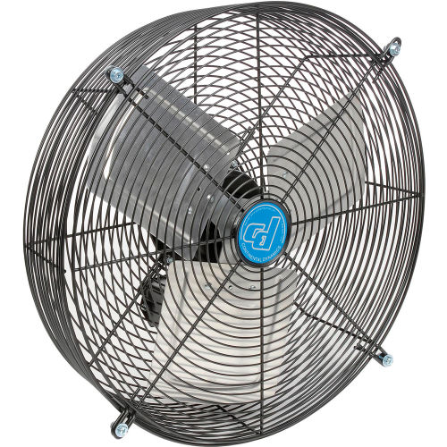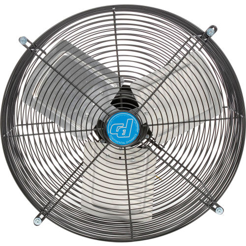 The guard mounted direct drive exhaust fan is made for low-pressure exhausting and cooling applications. Three aluminum fan blades are enclosed in steel spiral wire guards for safety. This fan can be bolted directly to the wall with built-in mounting holes. This fan is operated with three speeds of up to 1500 RPM 120V. The fan measures in diameter with an overall size of 20-1/4". It is UL, cUL listed and conforms to UL507 standard. The product has a limited warranty of 1 year.