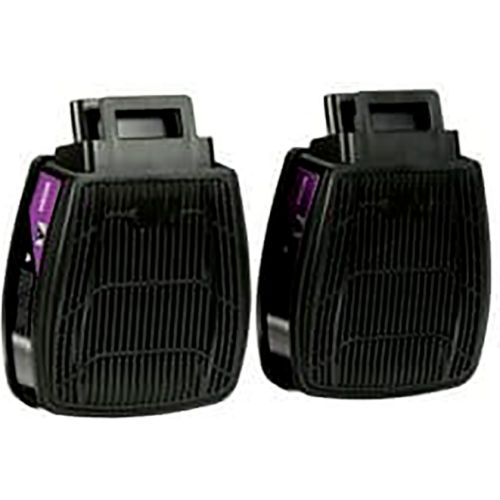 Secure Click Organic Vapor Cartridge/Filter P100 D80921 is NIOSH-approved to help provide respiratory protection against certain organic vapors and oil and non-oil based airborne particulate contaminants. The D80921 organic vapor cartridges and P100 filters are for use with Secure Click facepieces. Secure Click cartridges/filters utilize dual flow technology for easier breathing. Secure Click Organic Vapor Cartridge/Filter P100 D80921 has the Secure Click connection style. The Secure Click connection style enables a quick, simple connection of the cartridges. Simply align the connections on the facepiece and cartridge/filter and push until you hear a click. The innovative Secure Click connection helps provide wearers confidence that the cartridges/filters are installed properly. Also, the Secure Click cartridges/filters are dual-flow to allow easier breathing. Two dual-flow cartridges/filters on each respirator combine to create four airflow paths in the world's first quad-flow cartridge/filter system providing greater breathability and comfort. The Secure Click Organic Vapor Cartridge/Filter P100 D80921 is NIOSH-approved for use against certain organic vapors and oil and non-oil based airborne particulate contaminants when used with approved Secure Click facepieces. Refer to the Respirator Selection Guide for a list of chemicals for which these cartridges/filters can be used. The D80921 is not for use in environments that are immediately dangerous to life or health (IDLH) or for sandblasting. Change Secure Click Organic Vapor Cartridge/Filter P100 D80921 in accordance to your well-documented change-out schedule or earlier if smell, taste or irritation from contaminants is detected. Replace the cartridges/filters if it becomes damaged or if breathing becomes difficult. If used in environments containing only oil aerosols, replace the cartridges/filters after 40 hours of use or 30 days, whichever is first.