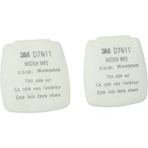 Secure Click Particulate Filter N95 D7N11 can be attached to Secure Click Cartridges D8000 Series to provide particulate protection when used with Secure Click facepieces. Use the Secure Click Filter Retainer D701 to attach two D7N11 filters to each cartridge. When certain airborne particulates are present in the work environment in addition to certain vapors or acid gases, a particulate filter may be required. Use the Secure Click Particulate Filter N95 D7N11 to add particulate protection to Secure Click Cartridges D8000 Series. Common uses of D7N11 particulate filters include filtering solids such as those from processing minerals, coal, iron ore, cotton, flour, and certain other substances. It may also be used for liquid or oil based particles from sprays that do not also emit harmful vapors and for metal fumes produced from welding, brazing, cutting and other operations involving heating of metals. The D7P71 is not for use in environments that are immediately dangerous to life or health (IDLH), sandblasting, or in environments that contain asbestos. Change your Secure Click Particulate Filters N95 D7N11 if they become dirty, damaged, or difficult to breathe through. offers a free online tool to help you select the appropriate respirators, cartridges, and filters for your workplace respiratory hazards and contaminants. Select and Service Life Software (www.3M.com/sls) contains more than 700 different chemicals and provides documentation of your choices.