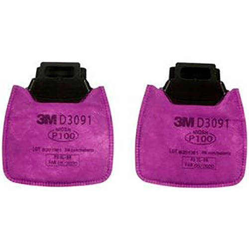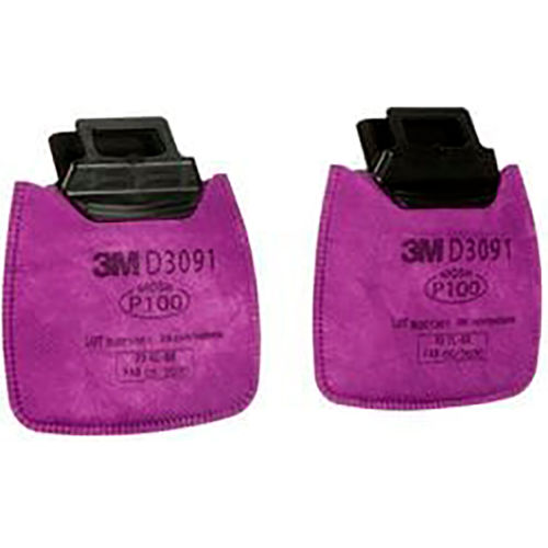 Secure Click Particulate Filter P100 D3091 is NIOSH-approved and designed to help filter a broad range of oil and non-oil based airborne particulate contaminants. The D3091 particulate filters are for use with Secure Click facepieces. Secure Click Particulate Filter P100 D3091 has the Secure Click connection style. The Secure Click connection style enables a quick, simple connection of the particulate filters. Simply align the connections on the facepiece and filter and push until you hear a click. The innovative Secure Click connection helps provide wearers confidence that the filters are installed properly. Also, the Secure Click filters are dual-flow to allow easier breathing. Secure Click Particulate Filter P100 D3091 is made with proprietary Advanced Electrostatic Media (AEM) consisting of highly charged microfibers arranged in an open formation that enhance the capture of airborne particles while allowing for greater passage of air through the media. These particulate filters are both flame and water resistant. The D3091 particulate filter may be used in a variety of applications such as grinding, sanding and welding. Common uses of D3091 particulate filters include filtering solids such as those from processing minerals, coal, iron ore, cotton, flour, and certain other substances. It may also be used for liquid or oil based particles from sprays that do not also emit harmful vapors and for metal fumes produced from welding, brazing, cutting and other operations involving heating of metals. The D3091 may be used to help reduce exposure to radioactive particulate materials such as uranium and plutonium. It can also be used for asbestos. The D3091 is not for use in environments that are immediately dangerous to life or health (IDLH), sandblasting, or in environments that contain hazardous levels of organic vapors and/or acid gases. Change your Secure Click Particulate Filters P100 D3091 if they become dirty, damaged, or difficult to breathe through. If used in environments containing only oil aerosols, replace the filters after 40 hours of use or 30 days, whichever is first.