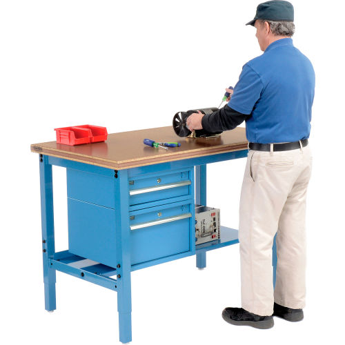 Buy Global Industrial 48 x 30 Production Workbench - Shop Top Safety Edge - Drawers & Shelf - Blue for $879.00 at @ Globalindustrial.com
