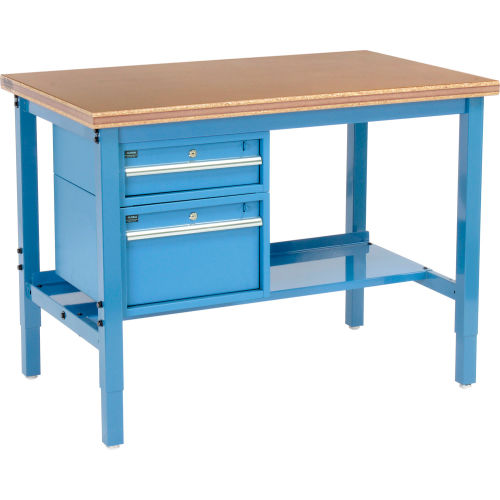 Global Industrial 48 x 30 Production Workbench - Shop Top Safety Edge - Drawers & Shelf - Blue
