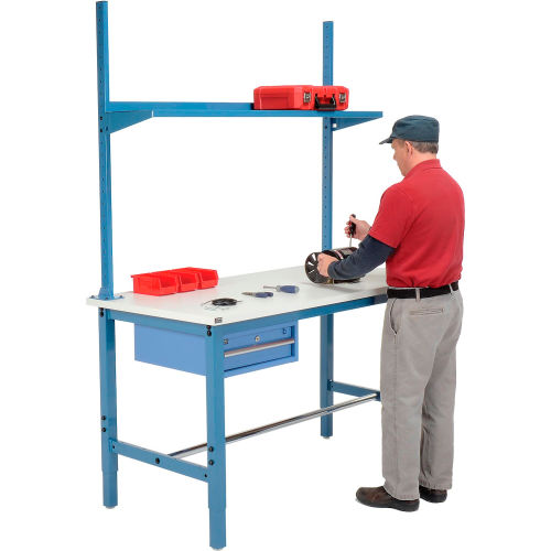 Buy Global Industrial 60x36 Production Workbench ESD Square Edge - Drawer, Upright & Shelf BL for $965.00 at @ Globalindustrial.com