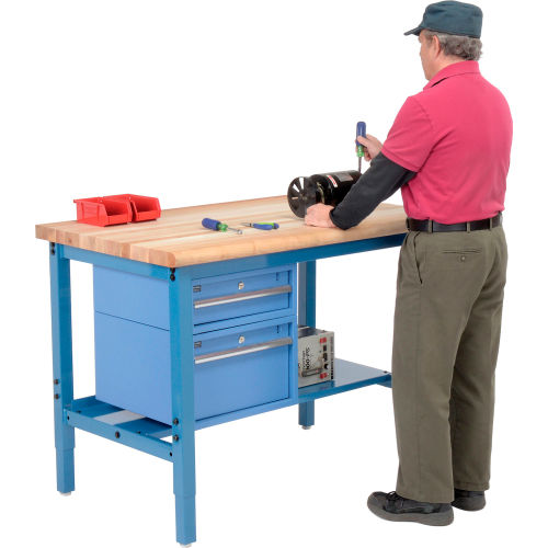 Buy Global Industrial 48"W x 30"D Production Workbench - Maple Safety with Drawers & Shelf - Blue for $1,075.00 at @ Globalindustrial.com