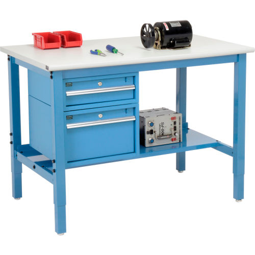 Buy Global Industrial 48"W x 36"D Production Workbench - ESD Safety Edge - Drawers & Shelf - Blue for $1,075.00 at @ Globalindustrial.com
