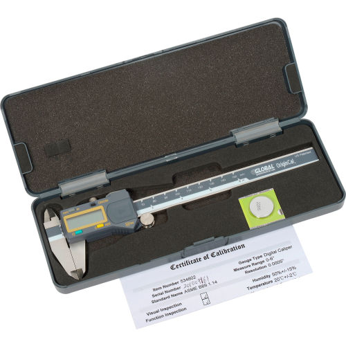 For projects that require extremely precise measurements and components, the Global Industrial 0-6" Absolute Origin IP54 Digital Caliper With Calibration Certificate is an essential tool for completing projects in woodworking, carpentry, engineering, automotive, and other industries. This simple and completely handheld, digital caliper uses Super High Accuracy Absolute memory technology to provide definitive results for item dimensions. Whenever the digital caliper is turned on, the easy-view large LCD displays the actual sensor position and is ready to start measuring. The intuitive design means that it's not required to reset to zero, making measuring speed unlimited. Standard USB data output (cable sold separately.) High quality surface finish for extra smooth slider movement. Caliper maintains rigid track of its origin position once it is set. 2 Year Limited Warranty. Features: Resolution: 0.0005'/0.01mmAccuracy: 0.001'/0.02mmRange: 6'/150mmIncludes Factory Calibration CertificateIP54 splash water and dust resistantMeasuring Speed: UnlimitedBattery: 1x 3V CR2032 Battery (spare included) life: 2 years under normal operationHardened Stainless steel, lapped finishedSPC Output with USB Connection (Cable Sold Separately)Meets DIN Standard 862; ISO 9001 certified manufacturing.