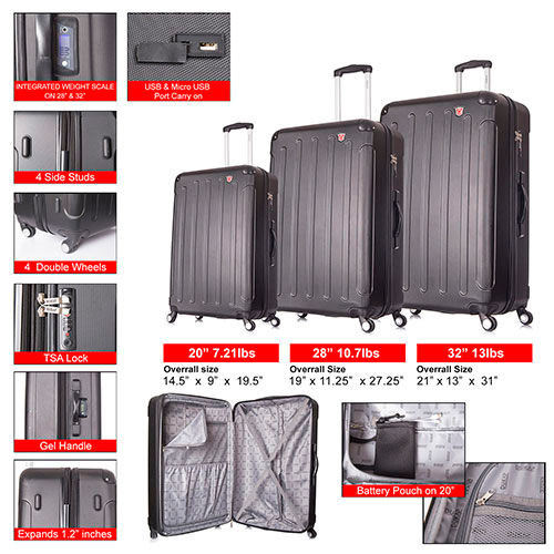 Buy DUKAP Intely 3-Piece Smart Hardside Luggage Set 20"/28"/32" - USB & Integrated Weight Scale - Black for $469.95 at @ Globalindustrial.com