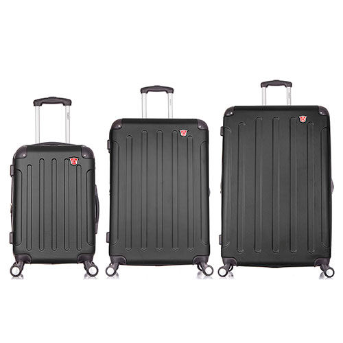 The DUKAP Intely collection is made of lightweight PC/ABS engineered material with micro diamond finish. The hard-flex construction offers maximum strength, durability and a water/scratch resistant finish. Offering a contemporary modern style with 4 dual spinner 360 wheels for effortless mobility, built in TSA Approved combination lock, 1.2" expandable for additional space, front productive corner bumpers to withstand higher impacts, full interior fabric lining with zippered compartment on one side and snap-on straps on the opposite side for easy packing plus one inside mesh zippered pocket and 2 slip pockets perfect for shoes, push button locking internal retractable trolley system, top and side ergonomic GEL handles for comfortable and easy lifting, 4 side studs that allows the luggage to stand upright and smooth gliding oversized zippers. The carry-on features an integrated USB and micro USB port providing access to power on the go. The Medium and Large sizes feature an exterior side integrated digital weight scale will allow you to avoid those extra overweight baggage fees. This high-tech luggage will display the total weight before traveling allowing you to comply with your carrier's weight specifications and any problems. This product can be purchased in different colors.